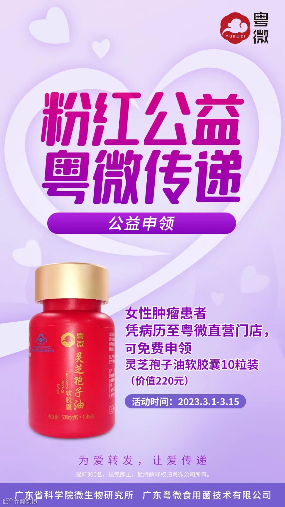 每个女性在一生的各个阶段都会面临着一些女性疾病的困扰,积极预防/治疗,才是远离疾病最有效的手段。粤微关爱女性,为健康助力,奉上一份爱的关怀——免费赠送孢子油,有需要的朋友快到粤微直营门店了领取哦。
