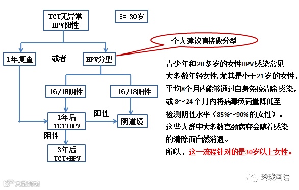 以上流程明确告诉您,阴道镜检查只是在宫颈细胞学检查或HPV检查发现异常才需要实施。