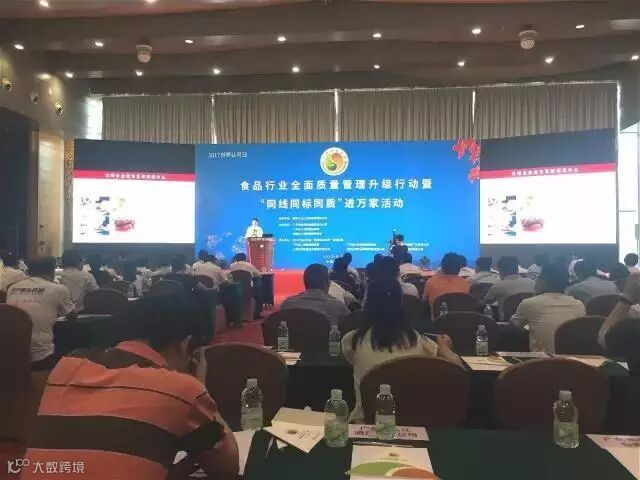 上周二,由广东省食品安全委员会办公室、广东出入境检验检疫局、中国出入境检验检疫协会联合举办的食品行业全面质量管理升级行动暨“同线同标同质”进万家活动在广州白云国际会议中心举行。此次活动是国家质检总局、国家认监委在全国组织开展以“认证认可助力质量提升”为主题的世界认可日系列活动之一。