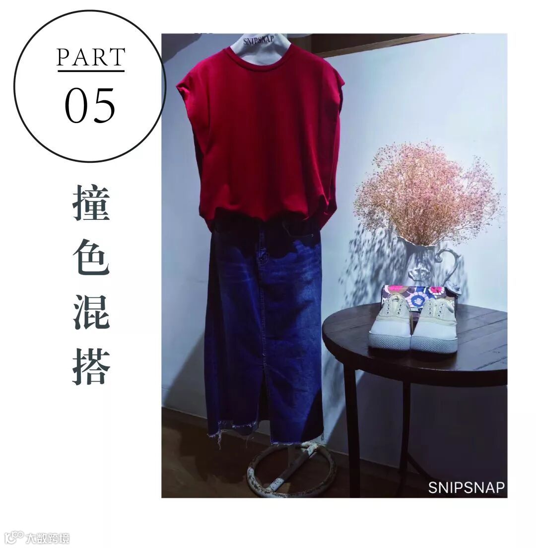 红色无袖T+牛仔裙
