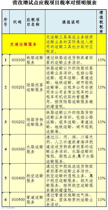 【收藏】一表在手,熟记营改增试点应税项目及税率!