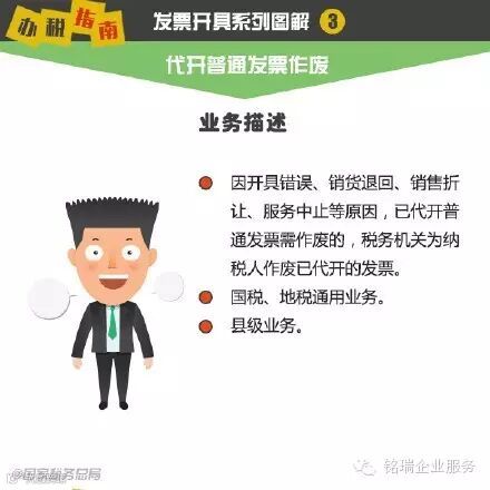 导读:因开具错误、销货退回、销售折让、服务中止等原因,已代开普通发票需作废的,税务机关为纳税人作废已代开的发票。具