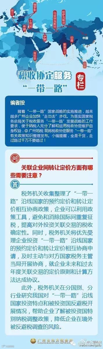 导读:税务机关收集整理了“一带一路”沿线国家的预约定价和转让定价相互协商政策,企业可以利用政策工具,避免和消除国际