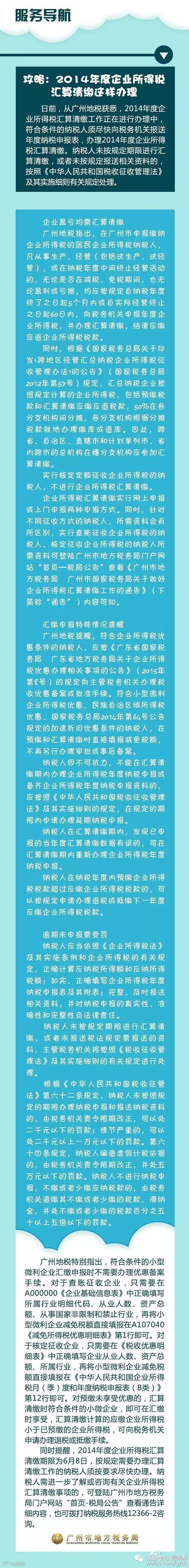 广州诚丰信企业服务有限公司2014年度企业所得税汇算清缴工作正在进行办理中,符合条件的纳税人须尽快向税务机关报送年度纳税申报表,办理2014年度企业所得税汇算清缴。