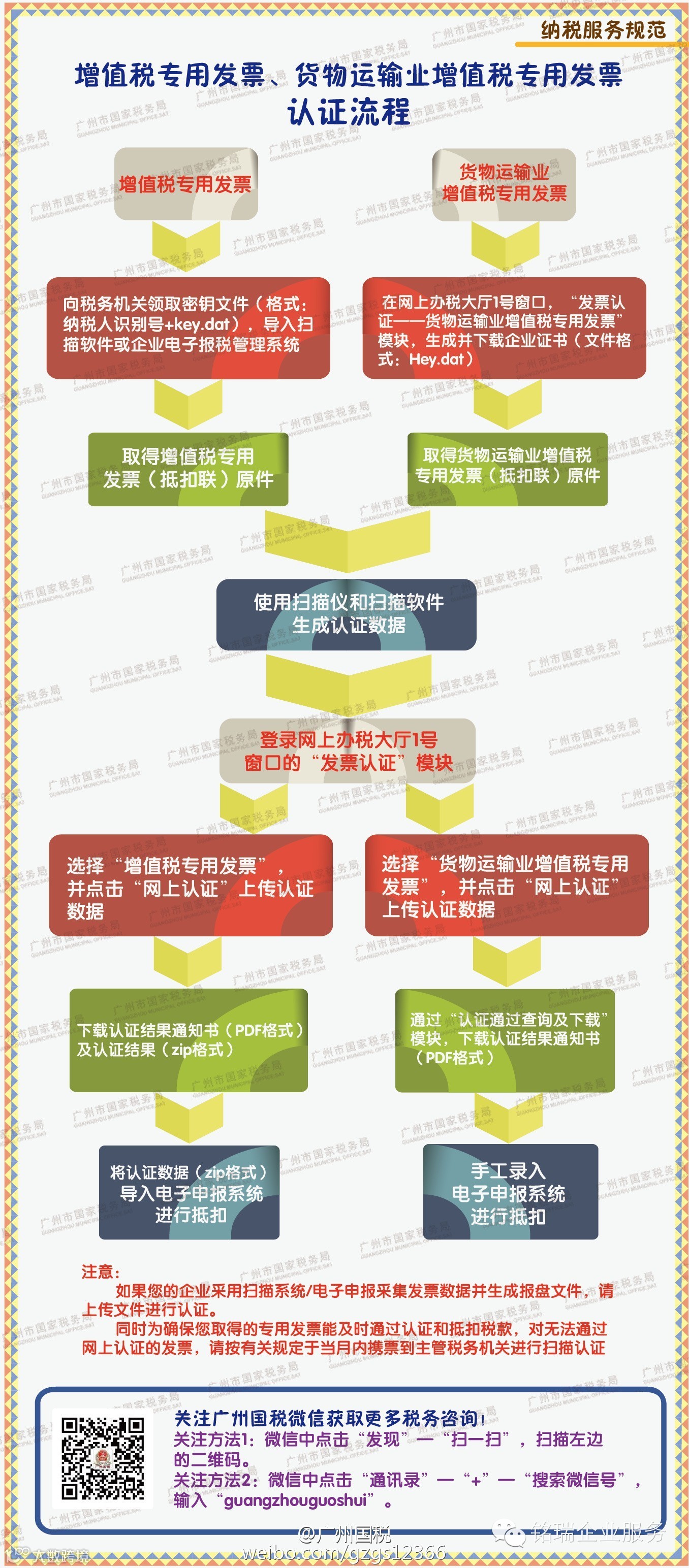 导读:一图解增值税专用发票、货物运输业增值税专用发票的认证流程。[推荐]了解更多财税工商信息,添加铭瑞公众号:mi