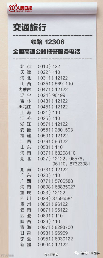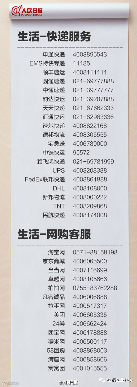 生活购物、银行服务、手机网络、高速报警、机场车站、消费投诉……元旦假期已经结束,春节也即将到来,不论你宅在家,还是出门旅游,这么多的号码,总有你会用到的。还不收藏起来,以备不时之需!也转给身边需要的人!扩散!