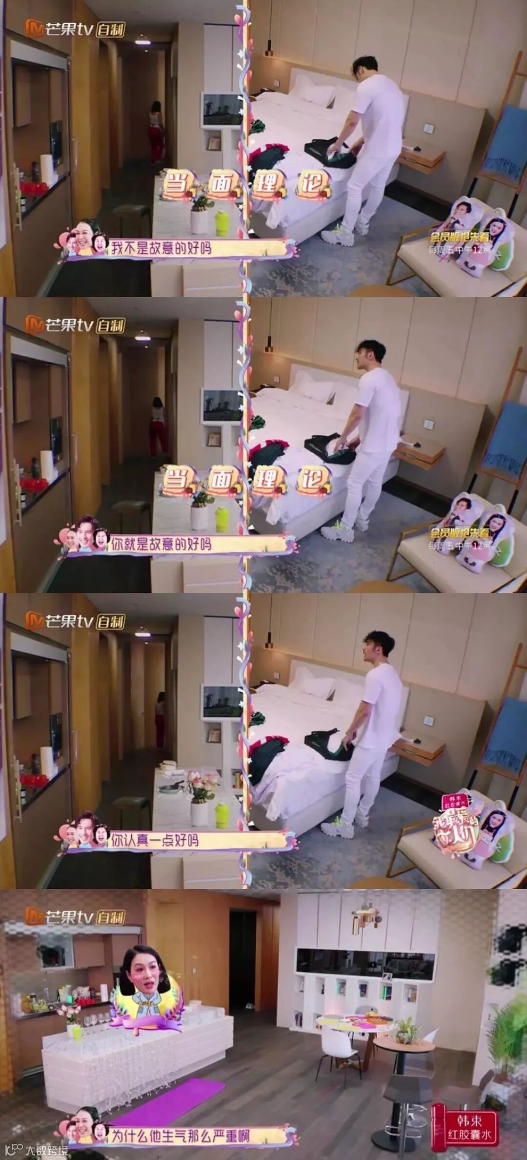 等张伦硕洗完,发现盖住镜头的只是一张薄薄的纸巾,觉得这样一定会暴露自己的隐私,就立刻生起气来。