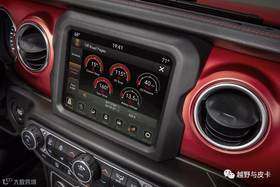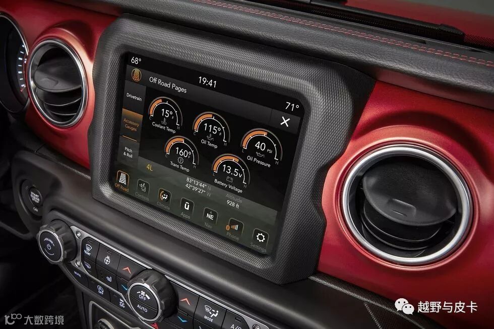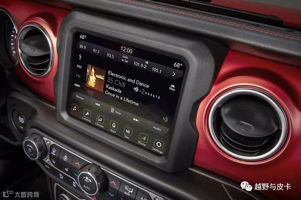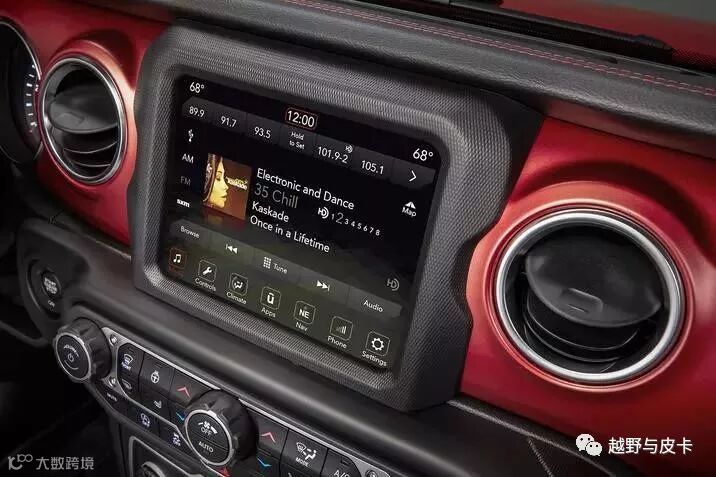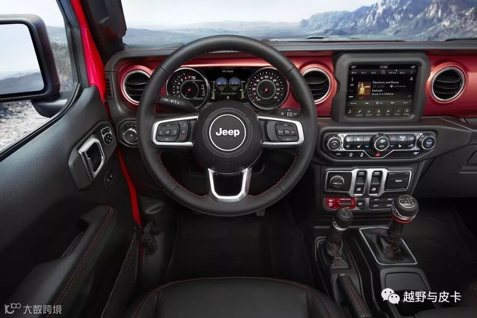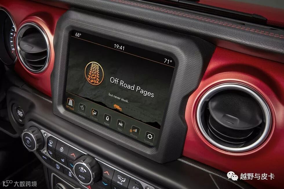 一键启动跟5/7/8.4英寸的屏幕让JL更加高档,最重要的是中控台上的所有功能全部防水,包括卢比肯上那巨大的8.4英寸屏幕。