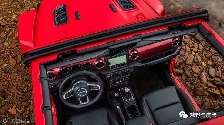 JL的软顶开关变得更加容易同时加强了密封性,整个车顶仍然可以全部拆卸,同时还可以选配电动软顶,硬顶等。