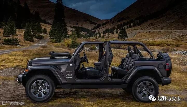 JL的车门仍然可以拆卸,并且使用了铝合金材质让重量更轻,重新设计的把手也让车门让拆卸变得更加简单,同时还有半门跟管式车门可供选择。