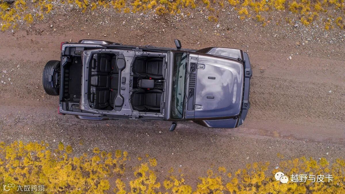 前风挡玻璃跟A柱完全独立,意味着放下玻璃后A柱仍然存在,不会像现款JK一样随风挡放倒,更加安全但看起来没有JK那么酷!