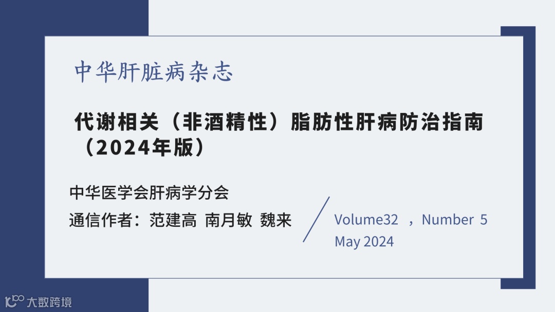 参考文献 [1]中华医学会肝病学分会. 代谢相关(非酒精性)脂肪性肝病防治指南(2024年版)[J]. 中华肝脏病杂志, 2024, 32(5):418-434. DOI: 10.3760/cma.j.cn501113-20240327-00163.