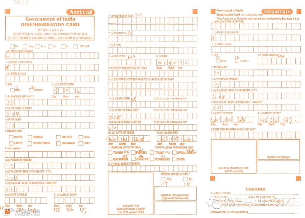 印尼入境卡模板: