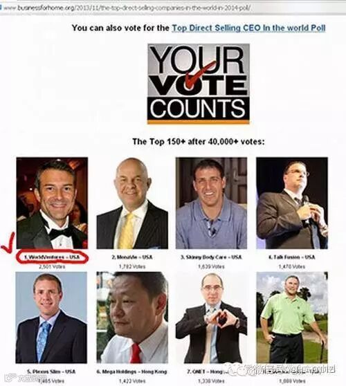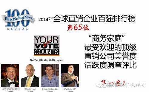 2013年美国直销权威网站“商务家庭”发起的,全球直销人参与评比的最受欢迎的顶级直销公司美誉度、活跃度调查评比,Worldventures排名第一
