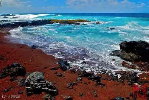 火山岩和大型铁矿受到海水侵蚀而形成。世界上主要有三个红色沙滩,分别在希腊、夏威夷、加拉帕戈斯群岛。