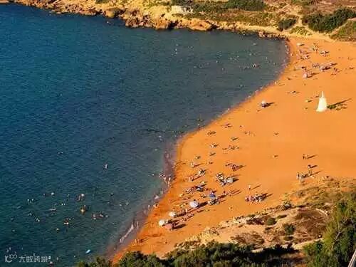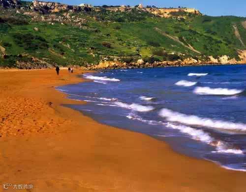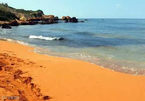 这很罕见,但确实存在。橙色是由于沙子里含铁量高,但却又没有火山岩中颜色较暗的沙子来中和。这类沙滩最有名的位于马耳他群岛的拉姆拉湾。