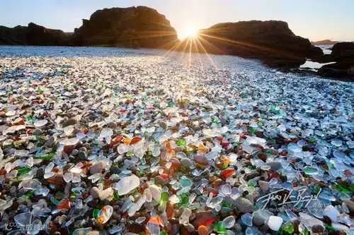 在美国加州的布拉格堡有这样的海滩。这里原本是丢垃圾的地方,但1960年代,居民们打算将垃圾回收清理时却发现,埋在下面的很多垃圾,被大自然的力量改变成各种颜色的石头,许多犹如玻璃般透亮!