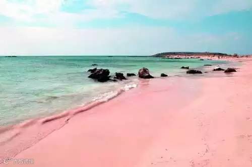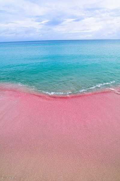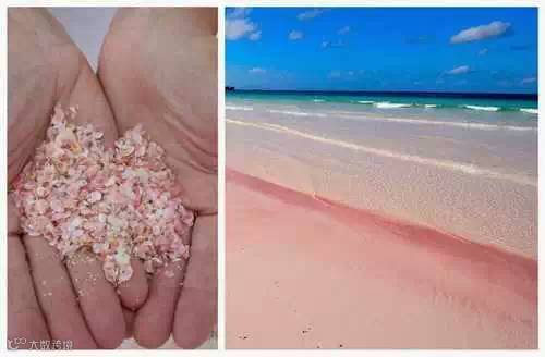 实际上有相当多的粉红色沙滩,但一般人不大见过。这种沙滩来自粉红色贝壳中的有孔虫,它们在死掉之后,留下来的壳与石头沙子混在了一起。