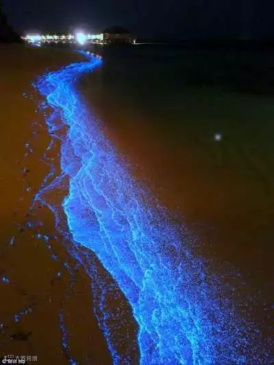 这并不是蓝色沙子,而是分布在海岸边的发光浮游生物造成的。这个沙滩位于马尔代夫,堪称自然奇景。