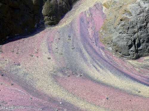 位于美国加州的这个沙滩,颜色极其美丽。这种紫沙是由被不断侵蚀的锰榴石颗粒形成的。