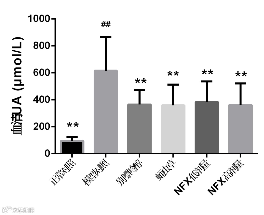 图1 富硒蛹虫草对高尿酸血症小鼠血清UA水平的影响