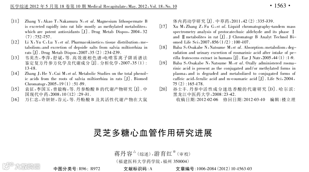 [3]蒋丹容,游育红.灵芝多糖心血管作用研究进展[J].医学综述,2012,18(10):1563-1565.