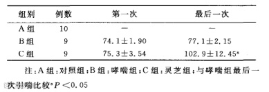 研究人员还对哮喘豚鼠引喘潜伏期进行了测定,在最后一次测定中发现,灵芝孢子组引喘潜伏期较哮喘组显著延长。