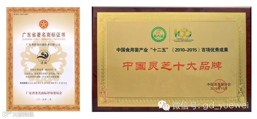 我们品牌接连斩获了“广东省著名商标”、“中国灵芝十大品牌”双项荣誉;