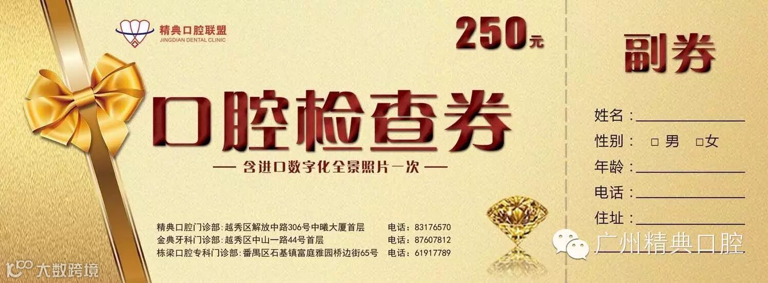原价250元口腔检查券(含数字化全景照片),免费啦!同时现场专家根据检查情况制定个性化治疗和保健方案