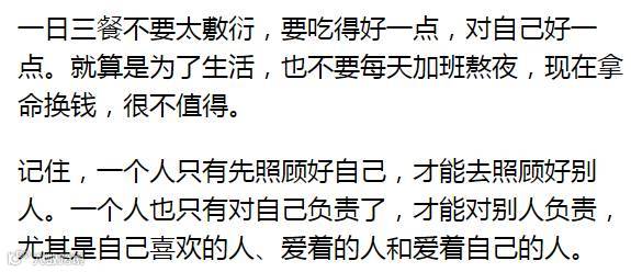 这是我几十年的人生经历告诉我的,我也希望你能早一天明白这个道理。健康的身体,才是努力奋斗的本钱。今后的日子,我们都要争取守护好这个“本钱”,能多一点时间相互陪伴。