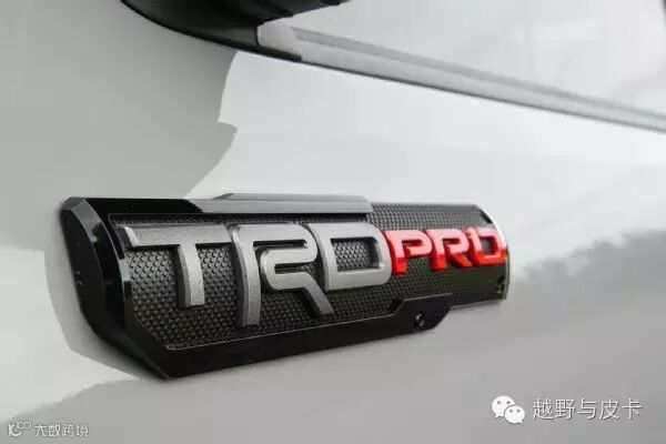 TRD Pro基于双排座短货箱短轴版本开发,搭载了一台278马力的V6发动机,其扭矩输出为360N·m,匹配六速自动变速变速箱。