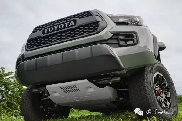 前桥底部加装了TRD定制的底盘护板,这块护板采用了铝制材料打造,厚度为6mm,保证一定强度的同时也尽可能减轻重量。