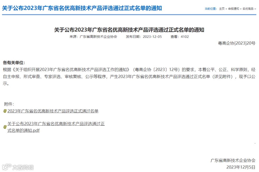 获评广东省名优高新技术产品