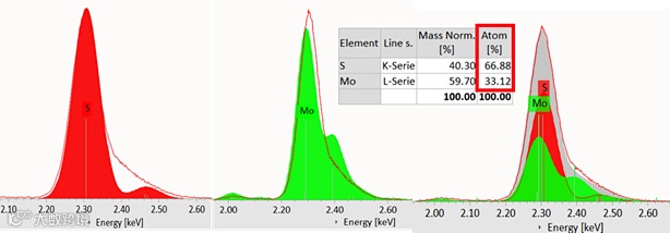图3以MoS2为例,展示了可视化谱峰分离的强大功能,有助于元素准确的定性定量分析。