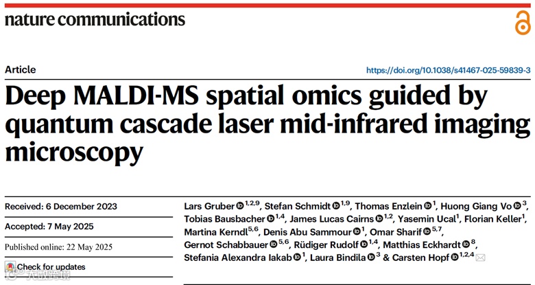 文章题目:Deep MALDI-MS spatial omics guided by quantum cascadelaser mid-infrared imaging microscopy