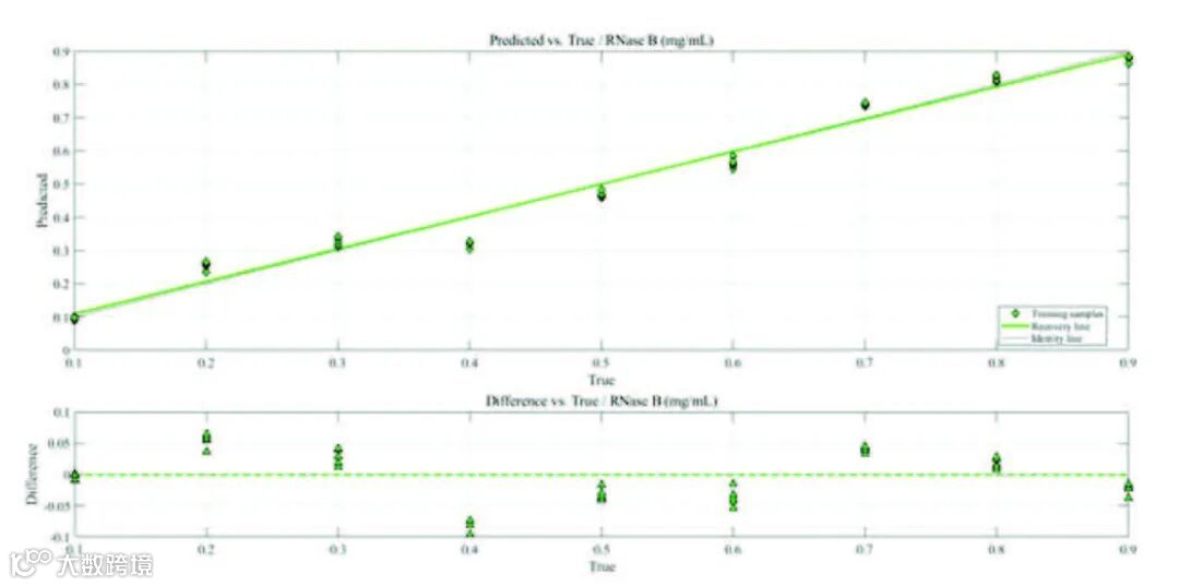为进一步对RNase A和RNase B进行定量, Hyperflux PRO Plus™采集梯度浓度样品后分别构建RNase A和RNase B的PLS模型。