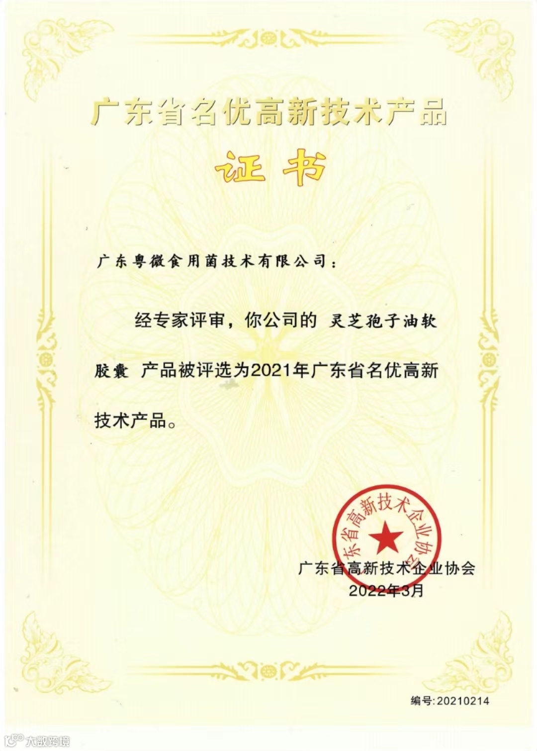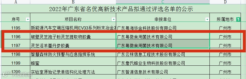 继2021年度『灵芝孢子油软胶囊』、『全灵芝孢子粉』后,截至目前粤微已经有4项产品荣获广东省名优高新技术产品。