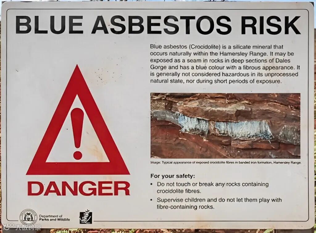 澳大利亚卡里基尼国家公园的蓝石棉警告牌