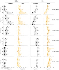 清晨地面NOx浓度高,随着边界层扩展逐步稀释;