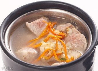 食材:蛹虫草5克,元肉3克,淮山5克,芡实10克,瘦肉100克。