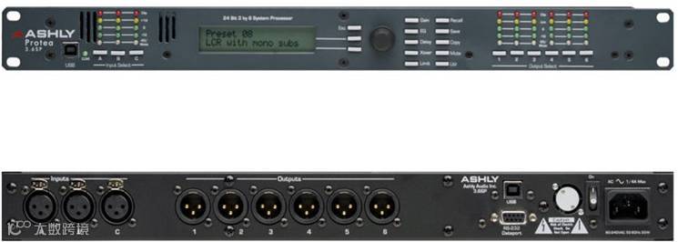 美国 ASHLY [雅士尼] Protea 3.6SP 是 3段输入/ 6 段输出数字信号处理器,具有能够精确而又广泛的对音频进行控制的功能。通过前面板界面上的功能按钮,允许快速发送所有控制参数,消除隐藏子菜单。背光 2 x 20 特性 LCD 显示通道和功能设置。相关按钮可访问所有音频功能和系统工具。更快捷设置和强大的可视输入/输出路由,EQ,滤波曲线系统,两个 USB 接口(一个在前面板,另一个在后面板)和 RS—232 接口可用于 Ashly 的控制软件( Protea 软件)和 PC 连接。提供一个 6 英尺的 USB—A 到 USB—B 电缆。软件的使用优势在于它包括非常强大的预设能力,并且在音频路由与控制处理方面非常的直观。