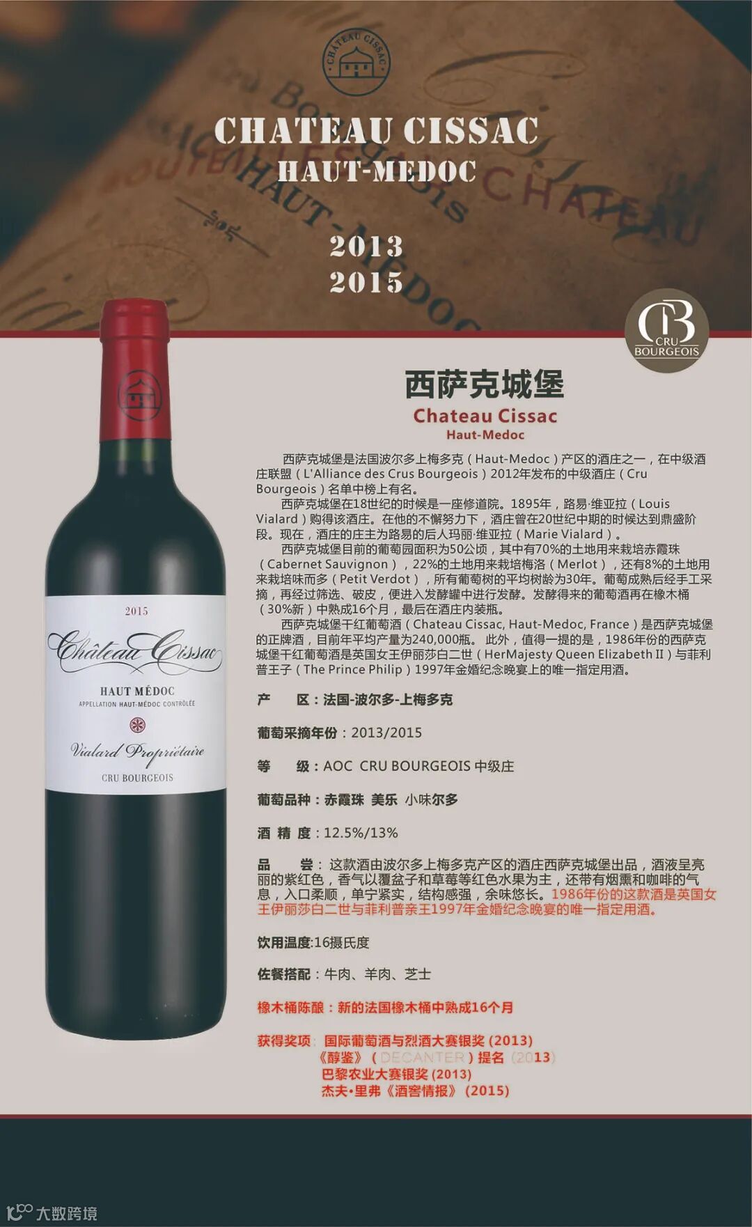 西萨克城堡位于法国波尔多上梅多克产区,也是法国著名的中级庄之一,西萨克葡萄酒正是该酒庄的正牌葡萄酒,它采用70%的赤霞珠,22%的梅洛,8%的小味尔多酿造而成,中级庄的等级排名仅次列级庄之后,甚至有个别中级庄的品质可以跟列级庄媲美,所以这款西萨克葡萄酒绝对能保证您的口福,再说了,英女皇钟爱的葡萄酒也差不到哪里去,这是一款聚品质与情操为一身的好酒呀!
