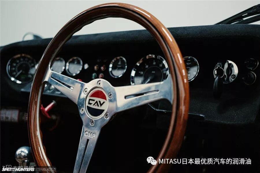因为这是复刻版本的GT40,同时为了彰显CAV自己的优质,因此方向盘上并没有打上福特的LOGO,而是CAV自己的LOGO!