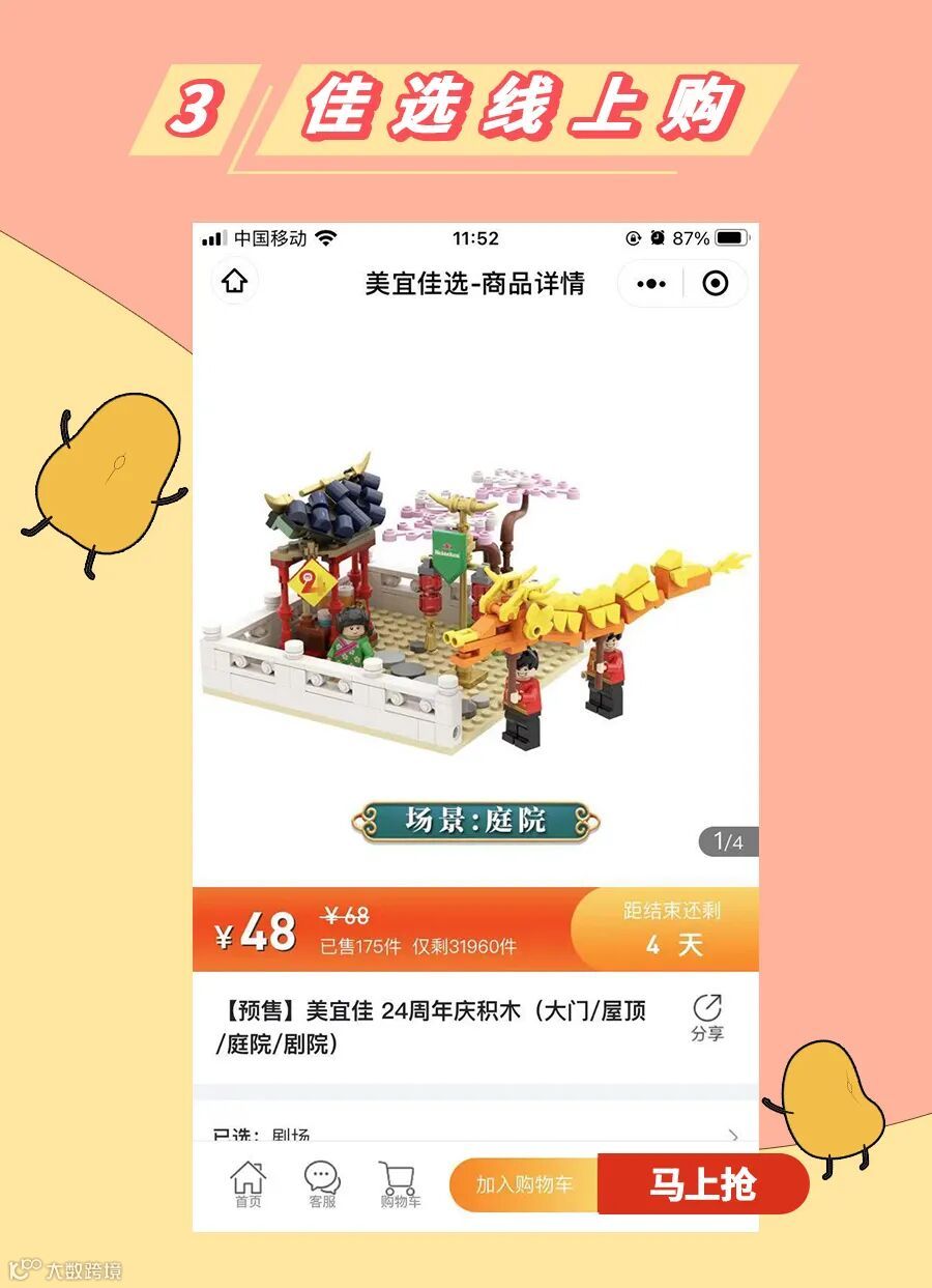 买三送一!1元券!满30减10!解锁三重叠加玩法,附周年庆积木攻略!