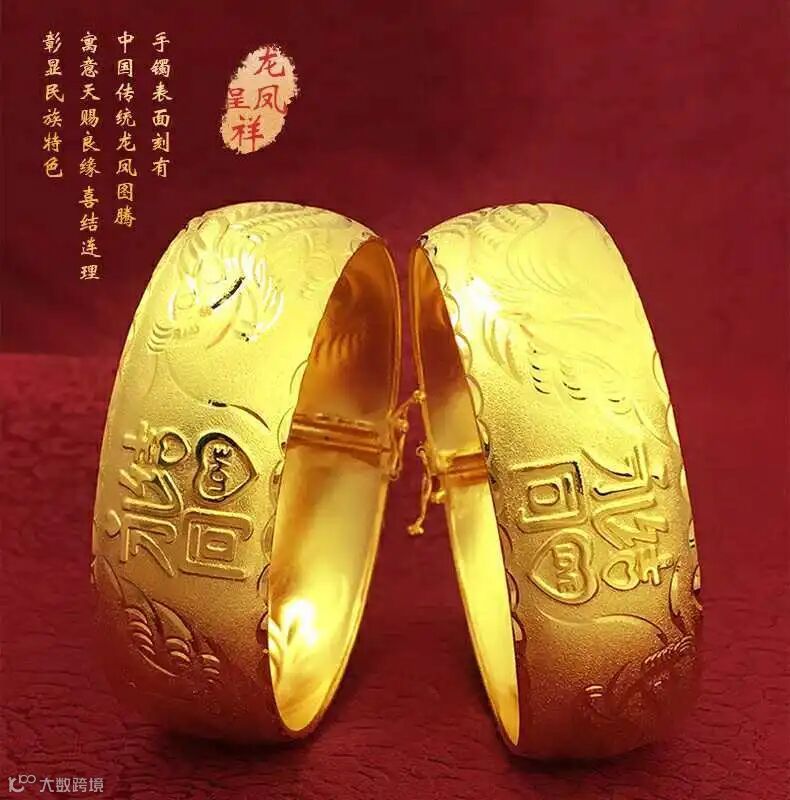 手镯表面刻有中国传统龙凤图腾