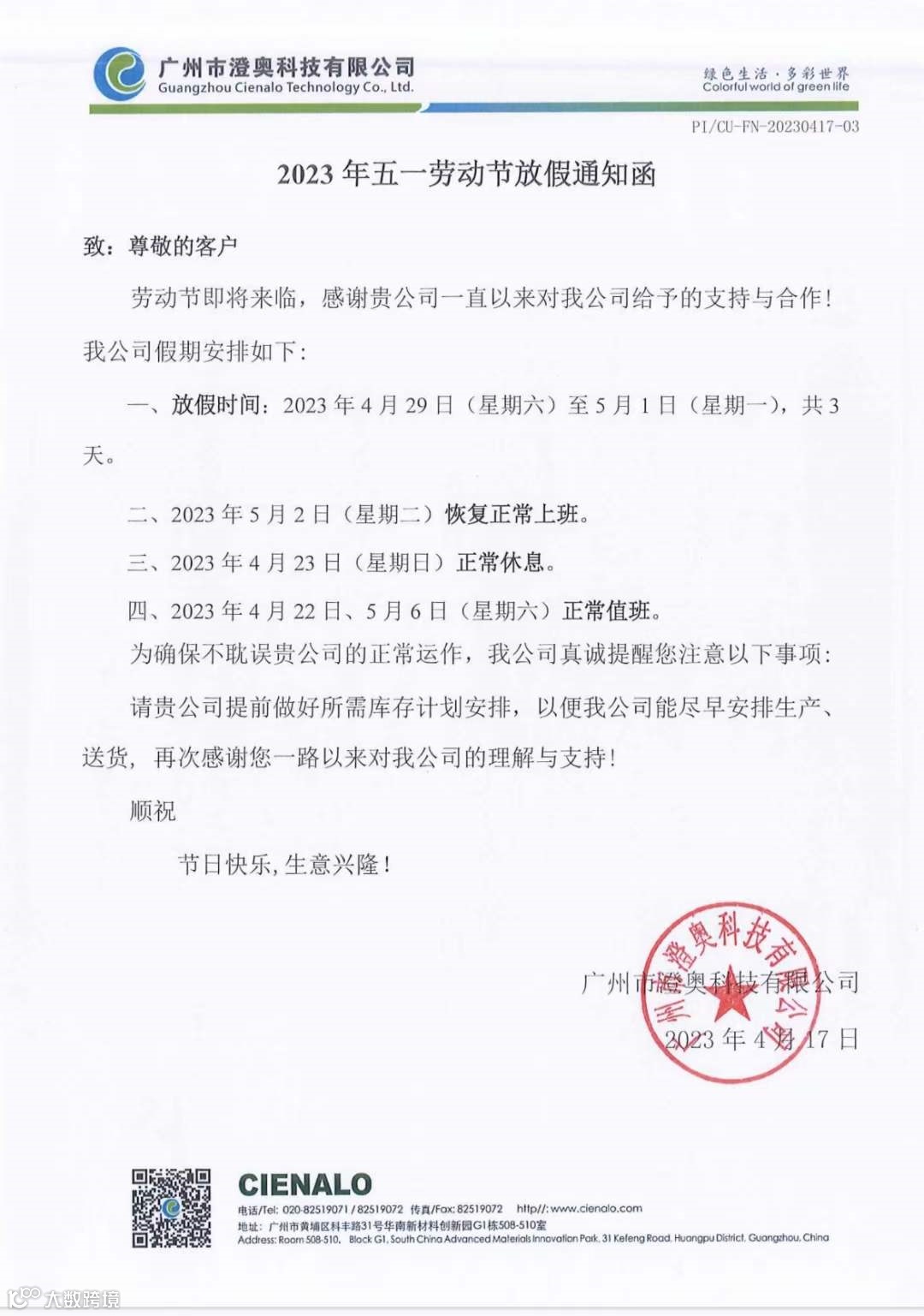 劳动节即将来临,感谢贵公司一直以来对我公司给予的支持与合作!我公司假期安排如下:
