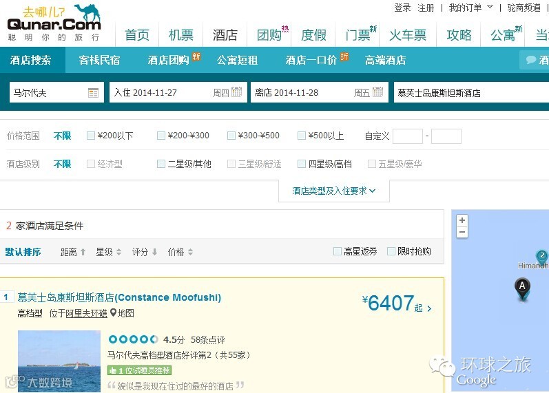 马尔代夫、南阿里环礁,00200年,马尔代夫共和国。电话:+ 960 668 10 10。价格是每人每房间和基于2成人。