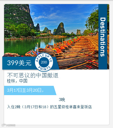 4天3夜399美元(会员抵扣200美元)
