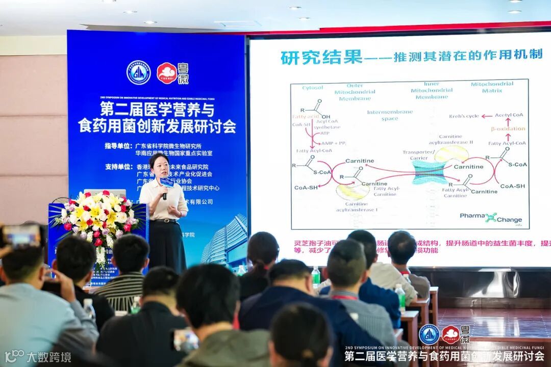 此外,谢意珍研究员还分享了粤微公司在科研创新方面的成果。公司建有广东省国际科技合作基地、广东省食用菌工程技术开发中心、博士后科研工作站等国家级科技创新平台,构建了国内领先的环状RNA、肠道菌群与增强免疫、抗肿瘤、抗衰老、降尿酸的功能研究平台。这些平台为粤微公司的发展提供了强有力的科研支撑。