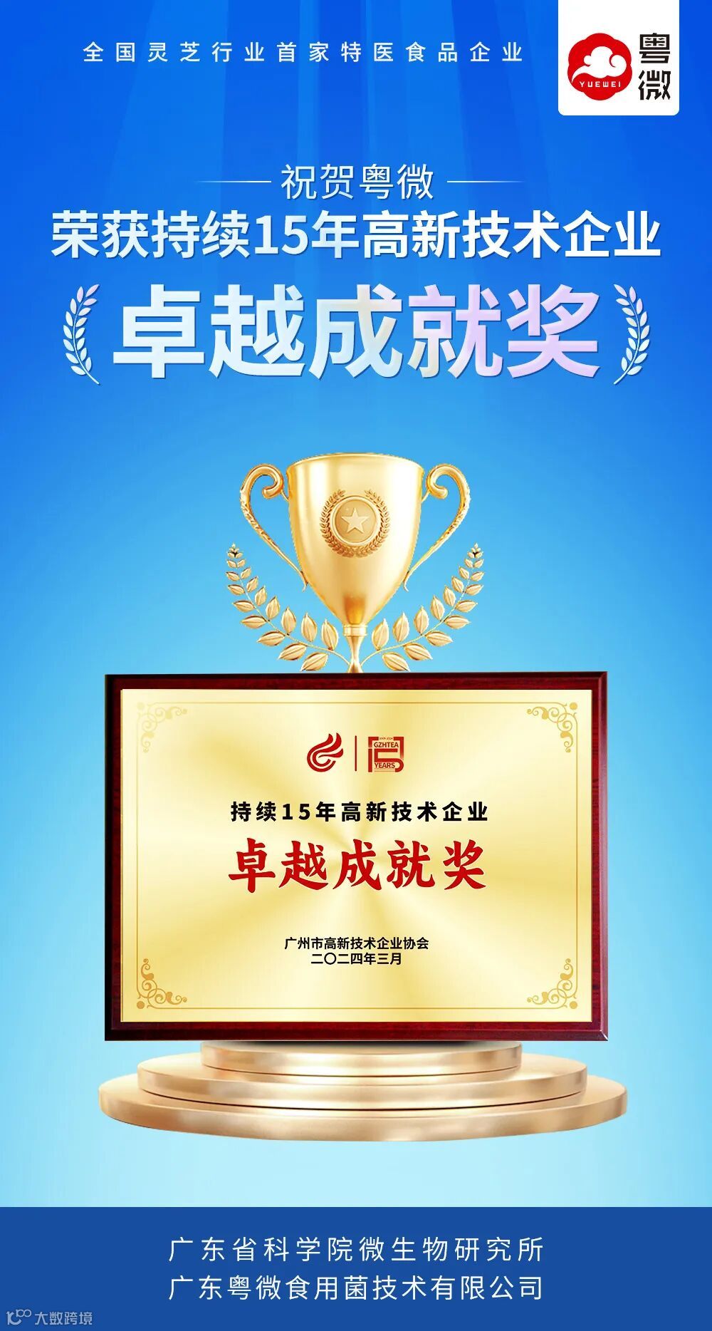 “持续15年国家高新技术企业——卓越成就”的授予,这不仅是对粤微过往卓越技术、创新能力、稳健发展态势和突出社会贡献的认可,更是对其未来蓬勃发展的期待。作为第一家获得特医食品批文的灵芝企业,粤微仍将基于国家战略的需求,